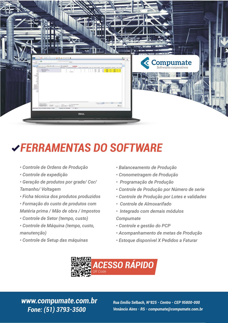 Através da aplicação destes princípios, o sistema, auxilia na tomada de decisões, fornecendo informações gerencias e estatísticas. A redução de custos é automática e se dá a partir da padronização dos processos, redução dos erros e retrabalho. O sistema de indústria é integrado aos outros módulos da Compumate, proporcionando um melhor gerenciamento dos processos.