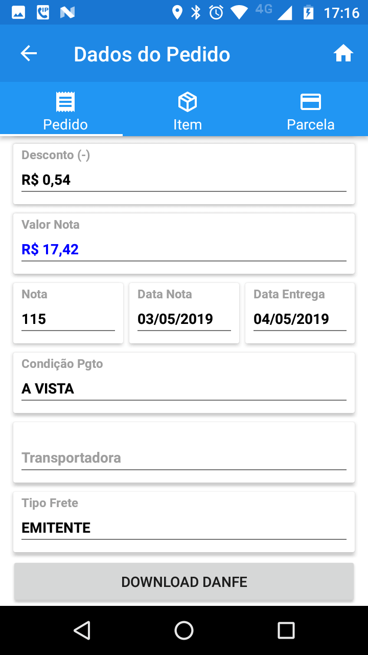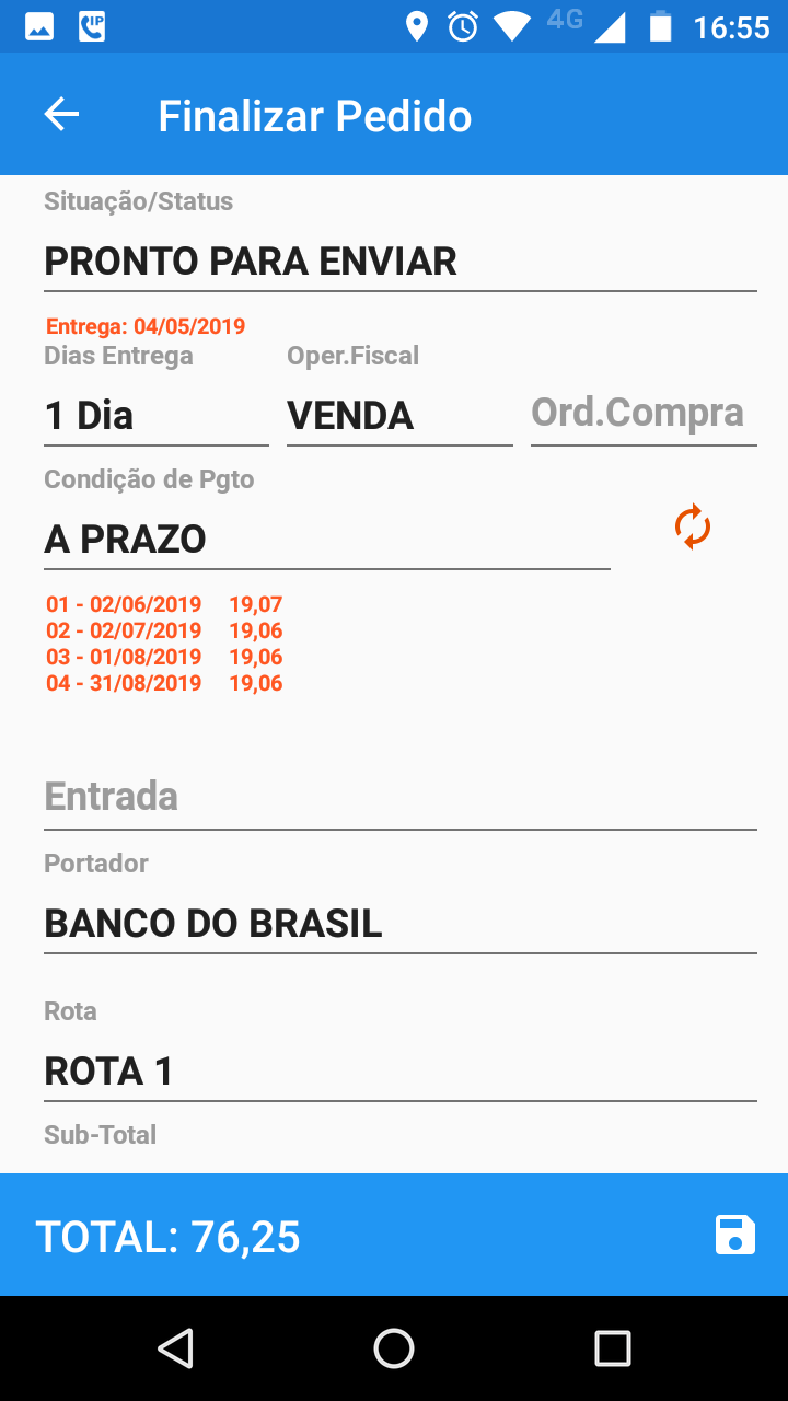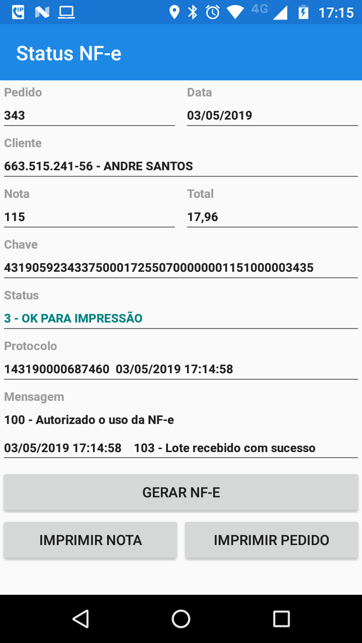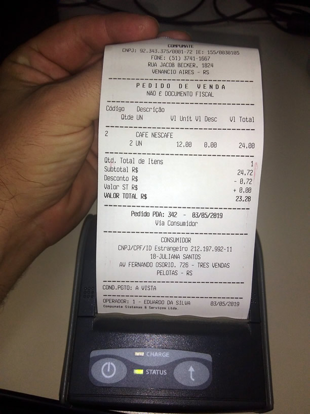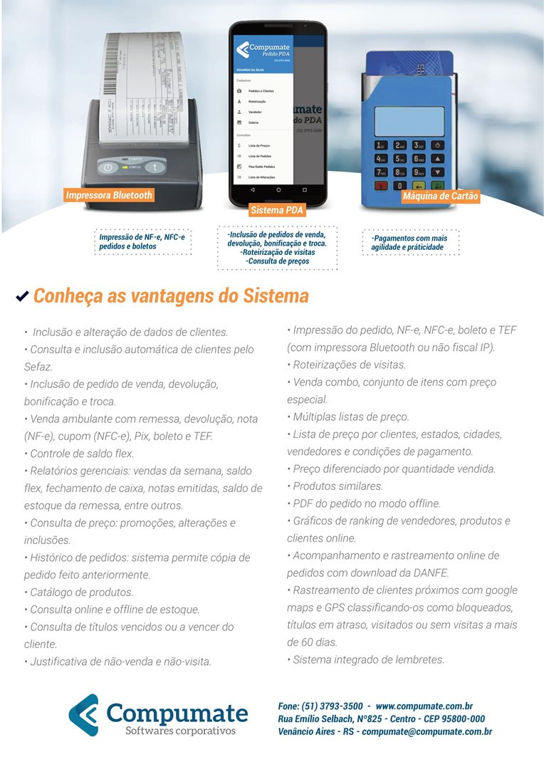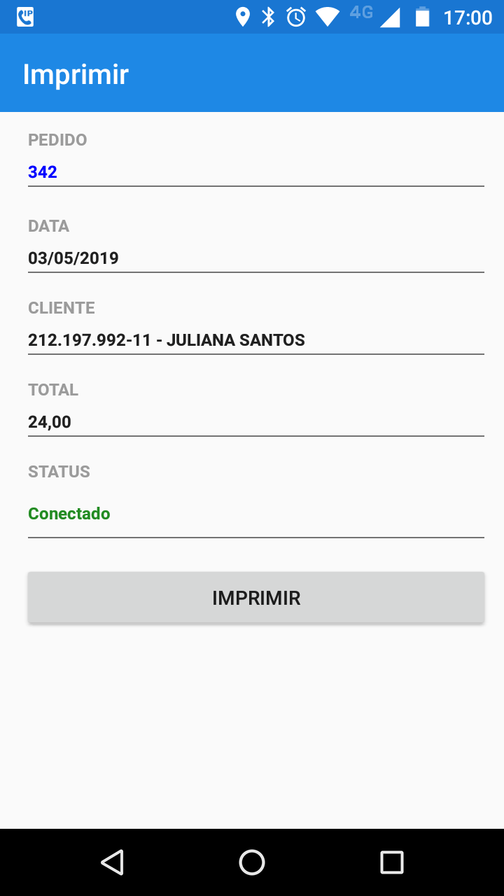 Impressão de notas, pedidos, comprovantes de liquidação de títulos e promissórias (Com impressora via Bluetooth Datecs DPP 350, Leopardo A7, Não Fiscal Elgin ou Epson)
