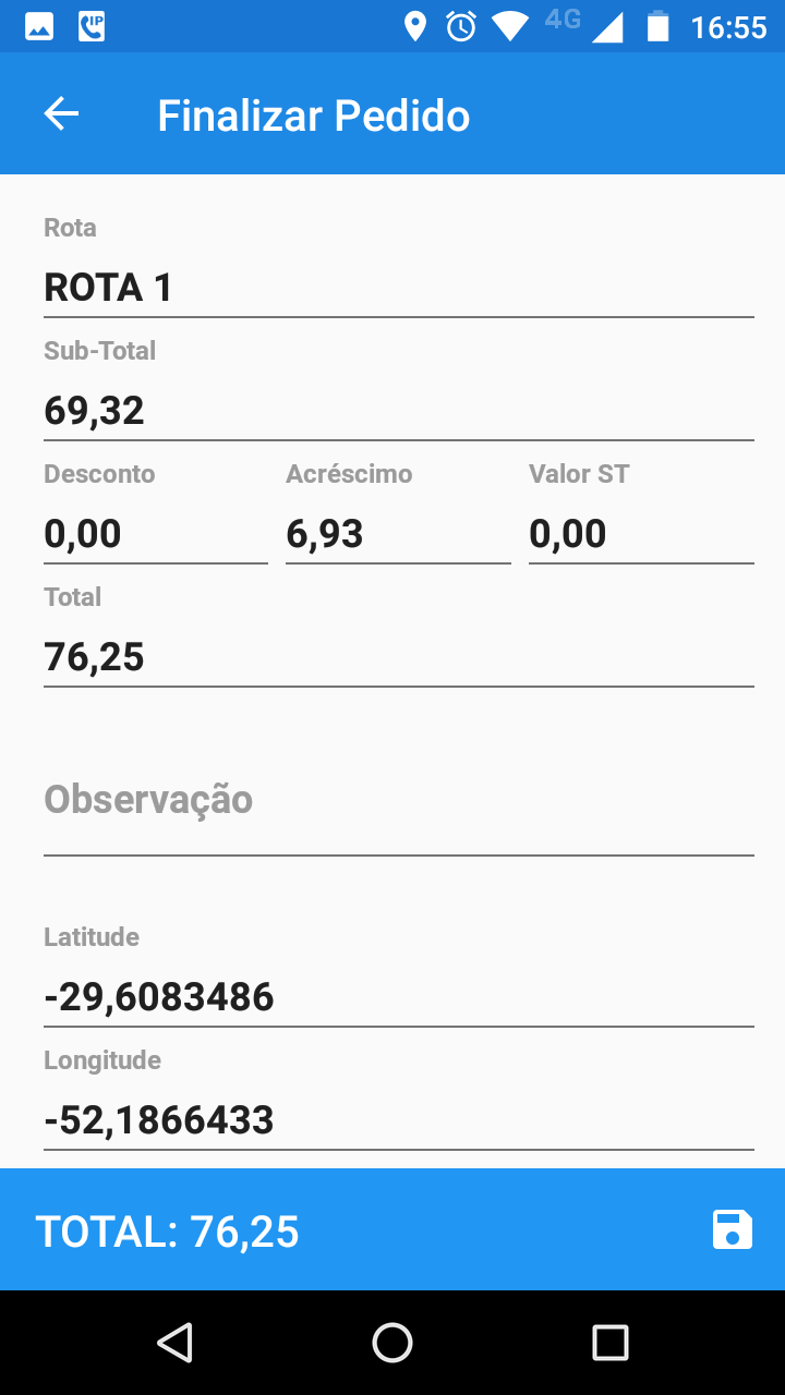 Rastreamento do vendedor através da captura da posição do GPS durante pedido ou justificativa de não venda