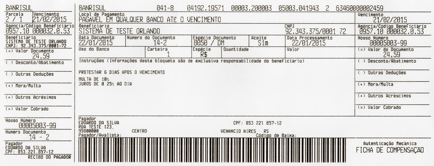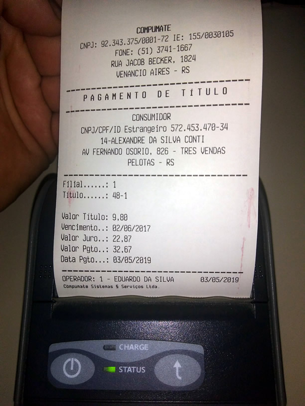 Cobrança/liquidação de título com impressão de comprovante de pagamento
