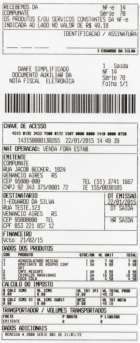Emissão de Nota Fiscal Eletrônica (NF-e), Cupom Fiscal Eletrônico (NF-e) e Boleto
